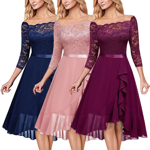 कंधे से ठोस फीता फ्रंट विभाजन लंबी आस्तीन मिडी लुभावनी पर्यावरण के अनुकूल कपड़े